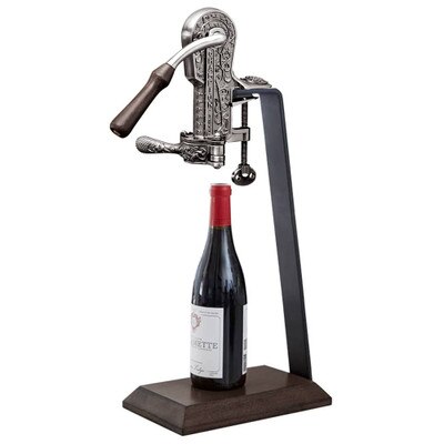 Rogar Champion Opener with Dark Wood Stand (P/N 34329). Opening a bottle of wine has never been easier! With 1 swing of the handle, the cork is penetrated and removed. To re-cork, simply reverse the motion.